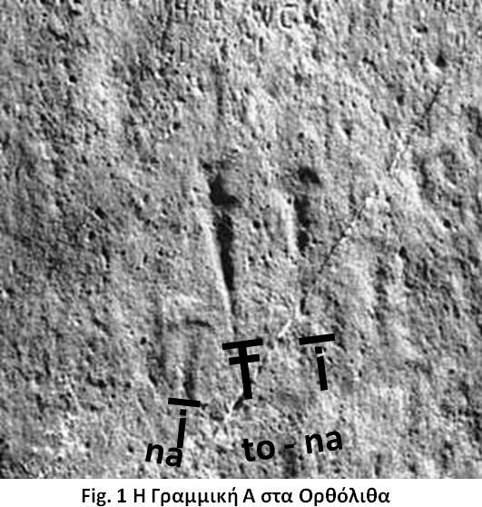 Το σύμβολο αυτό είναι μία συλλαβή της γραμμικής Α’ με φωνητική αξία na και είναι ακροφωνία της λέξης ναFός που μαρτυρείται έμμεσα στο επίθετο na-Fi-jo νάFιος στην γραμμική Β’ γραφή», υποστηρίζει ο ερευνητής και προσθέτει ότι «συμπερασματικά, το ότι εμφανίζεται η λέξη to-na, Στόνα=πέτρα τρεις φορές και πάρα πολλές φορές η ακροφωνία na, μάς παραπέμπει στη λογική των χαραγμάτων που έχουμε στα Μινωικά ανάκτορα, όπου σε πέτρες βρίσκονται χαράγματα συλλαβογραμμάτων της γραμμικής Α’, τα οποία έβαζαν οι λιθοξόοι κατασκευαστές -διεθνώς λέγονται Tekton marks- και πιθανόν δήλωναν ότι η επεξεργασία της πέτρας είχε ολοκληρωθεί και ήταν έτοιμη για να μεταφερθεί από το ορυχείο στον χώρο που θα έπρεπε να τοποθετηθεί».