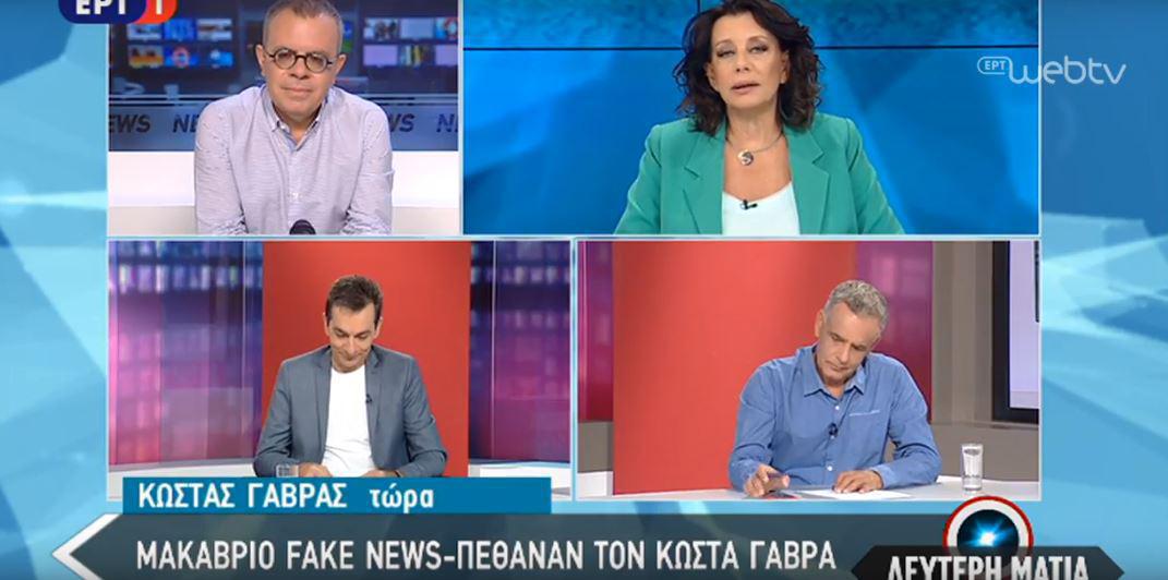 Σε fake news απέδωσε ο ίδιος ο Κώστας Γαβράς την είδηση του… θανάτου του, που έκανε τον γύρο το κόσμου πριν μερικά λεπτά. Ο διάσημος σκηνοθέτης, μιλώντας ζωντανά στην ΕΡΤ-1 και την εκπομπή «Δεύτερη Ματιά», δήλωσε ότι: «είναι περίεργα πράγματα αυτά» και πως «κάποια κακά νέα που γίνονται ως αστεία από κάποιους, μέχρι να διερευνηθούν, γίνονται πιστευτά από την κοινή γνώμη».