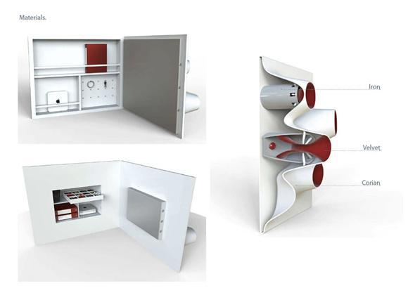 Unforgiven: Χρηματοκιβώτιο – παγίδα. Θα σκεφτόσασταν ποτέ να βάλετε το χρηματοκιβώτιο στο σαλόνι σας,σε κοινή θέα,να το παρατηρούν όλοι και όμως να είναι το πιο ασφαλές μέρος για να βάλετε τα λεφτά σας; Κι όμως… Αυτό το χρηματοκιβώτιο είναι σαν γλυπτό το οποίο διακοσμεί ευχάριστα τον τοίχο σας χωρίς κανένας να μπορεί να υποψιαστεί τι κρύβεται πίσω του. Στην περίπτωση όμως που ο κλέφτης καταλάβει την λειτουργία του και προσπαθήσει να το ανοίξει τότε θα βρεθεί εγκλωβισμένος στην παγίδα,αφού για να ξεκλειδώσεις το χρηματοκιβώτιο πρέπει να βάλεις τα χέρια σου στις δύο σωστές τρύπες (από τις εφτά) και να τραβήξεις τον μοχλό που βρίσκεται μέσα. Σε αντίθετη περίπτωση τα χέρια σου μένουν παγιδευμένα στον ειδικό μηχανισμό εγκλωβισμού που βρίσκεται σε κάθε τρύπα. Τα υλικά που χρησιμοποιήθηκαν στο εξωτερικό είναι το corian και το βελούδο. Σε συνεργασία με τους Manuel Torres, Alex Velasko.
