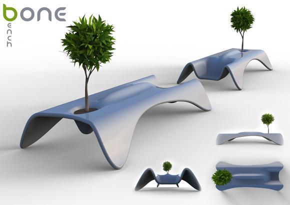 Bone bench: Παγκάκι με πηγή έμπνευσης ένα κόκκαλο και κάποια στοιχεία από car design.Οι διαστάσεις του είναι 2,50 μέτρα μήκος και 1,10 μέτρα πλάτος και μπορούν να καθίσουν έως και 7 άτομα, 3 από κάθε πλευρά και ένα στο άνετο χαμηλό κάθισμα-πολυθρόνα στο πλάι.Στην μία άκρη υπάρχει μία ενσωματωμένη γλάστρα με ένα δεντράκι.Το bone bench είναι μία ελαφριά κατασκευή χρησιμοποιώντας όσο το δυνατόν λιγότερο υλικό (προτεινόμενα υλικά αλουμίνιο και ανοξείδωτο ατσάλι) και κατά συνέπεια είναι ένα green product το οποίο θα αντέξει στον χρόνο.