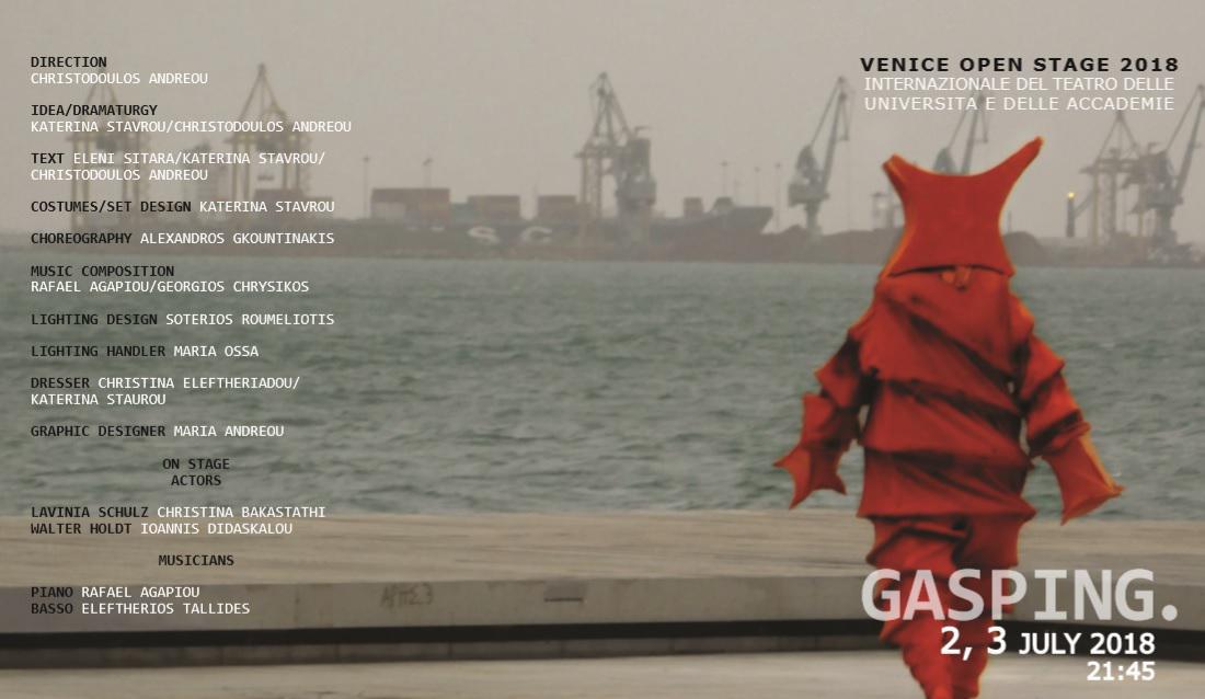 Οι συντελεστές της παράστασης «Ασθμαίνω» ταξιδεύουν στη Βενετία στις 2 και 3 Ιουλίου, προκειμένου να εκπροσωπήσουν το Τμήμα Θεάτρου της Σχολής Καλών Τεχνών του ΑΠΘ στο Διεθνές Φεστιβάλ Venice Open Air που διοργανώνεται κάθε χρόνο στην πόλη της Ιταλίας από το Μεταπτυχιακό Τμήμα του τοπικού Πανεπιστημίου Θεατρικών Σπουδών. Μάλιστα, οι φοιτητές του Αριστοτελείου εκπροσωπούν συνολικά την Ελλάδα, καθώς είναι η μοναδική συμμετοχή που προέρχεται από τη χώρα μας.