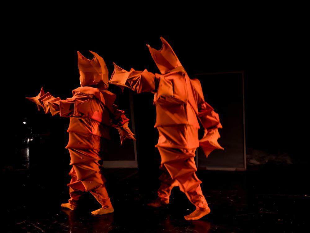 Ολόσωμες μάσκες, κοστούμια που καλύπτουν πλήρως το σώμα δημιουργούν ένα συνονθύλευμα περίεργων όγκων, παραμορφωμένων σχημάτων και έντονων χρωμάτων προσφέροντας μια διαφορετική προσέγγιση της κίνησης και των δυνατοτήτων του σώματος.