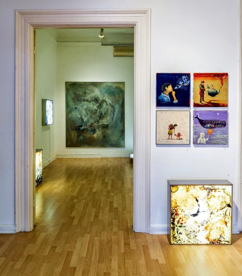 Ζωγραφική και έργα χώρου, αναδεικνύουν τρεις διαφορετικούς εικαστικούς προβληματισμούς, τρεις «μονολόγους», σε συμβίωση.