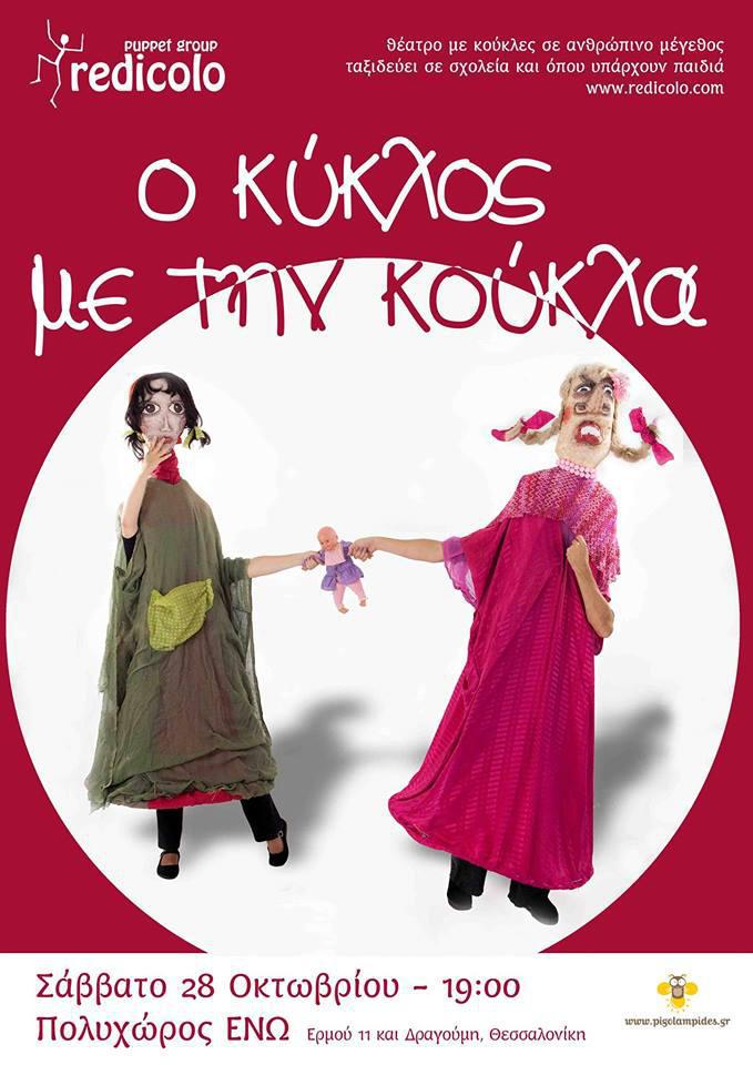 *Σάββατο 28 Οκτωβρίου στις 7μμ στο Πολυχώρο “ΕΝΩ” Ερμού 11 και Ίωνος Δραγούμη γωνία, Θεσσαλονίκη γενική είσοδος: 5 ευρώ ηλικίες: από 3 ετών κρατήσεις θέσεων: 6948092384, 2311284567 (ως τις 3μμ), 2310425097 (μετά τις 3μμ), redicolos@gmail.com