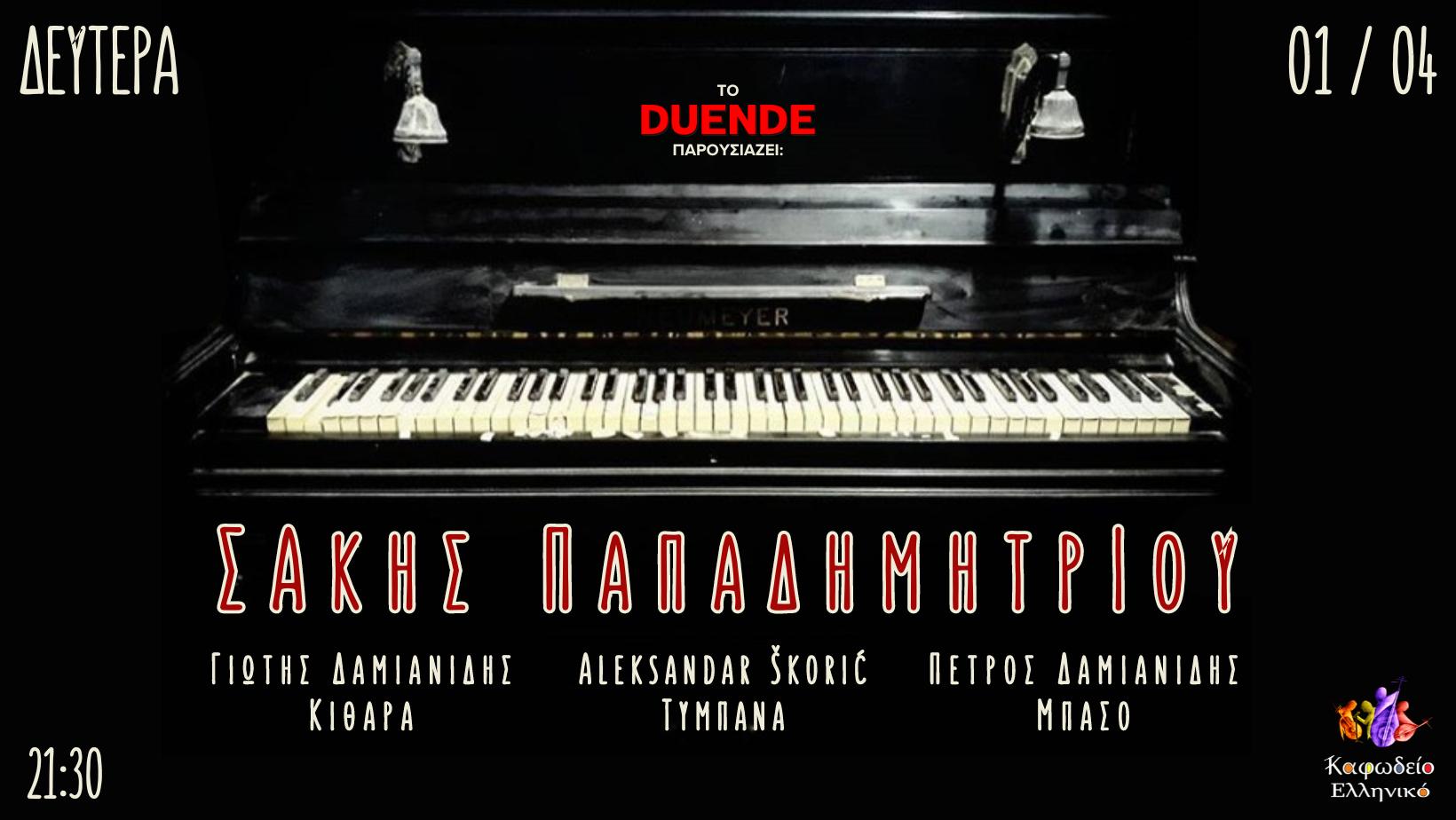 Τη Δευτέρα 1 Απριλίου, λοιπόν -ναι, είναι Πρωταπριλιά, αλλά δε πρόκειται για ψέμα!- ο Σάκης Παπαδημητρίου θα συμπράξει επί σκηνής με τους “δικούς μας” Γιώτη και Πέτρο Δαμιανίδη, αγαπημένους του συνεργάτες και επιφανή μέλη της τρομερής νέας γενιάς Ελλήνων αυτοσχεδιαστών, και το Σέρβο ντράμερ Aleksandar Škorić που πρωτογνωρίσαμε την περασμένη χρονιά ως μέλος των Akira Sakata Entasis !