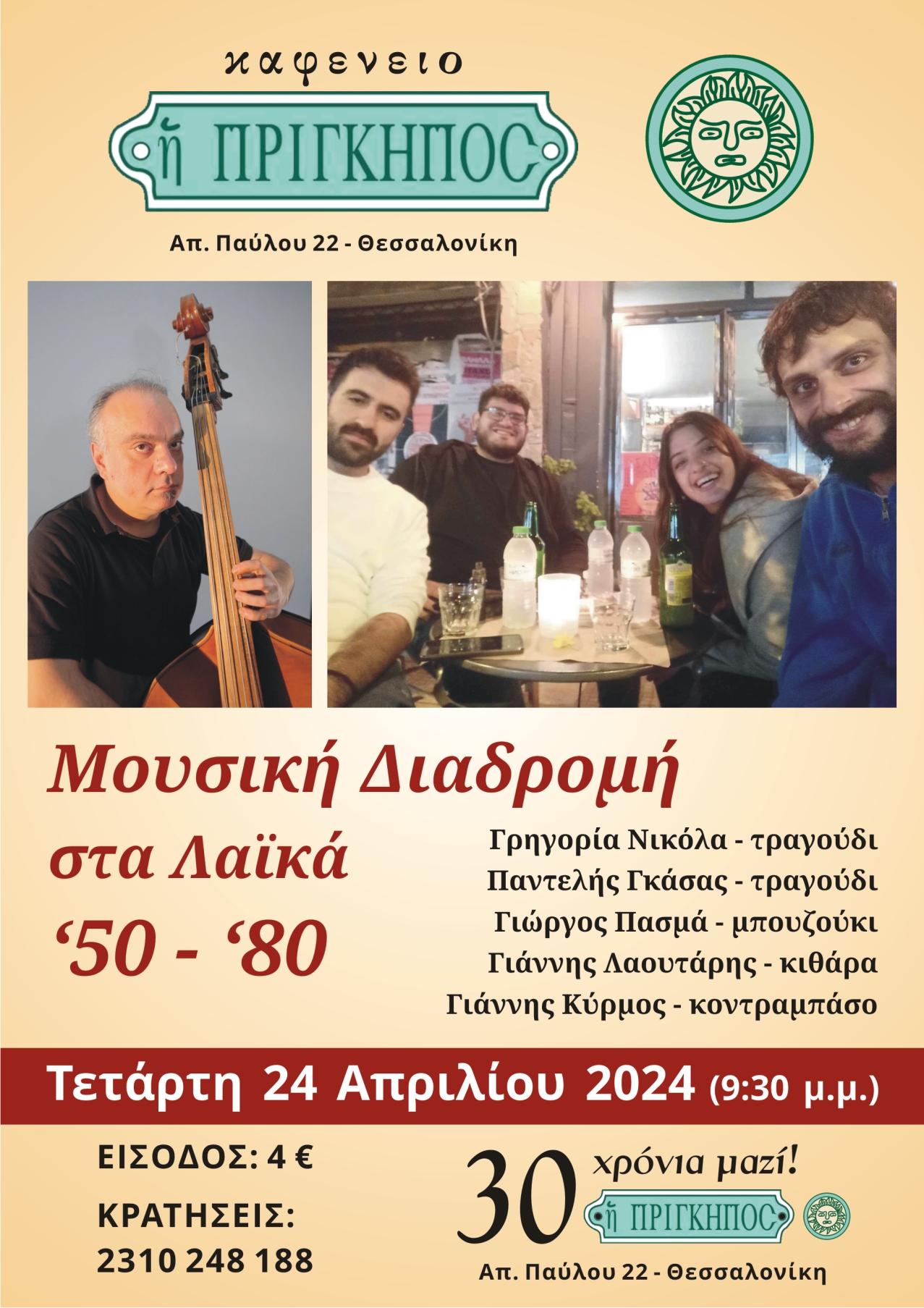 Τετάρτη 24/04, στις 21:15|Καφενείο “Η Πρίγκηπος”|Είσοδος 4 ευρώ