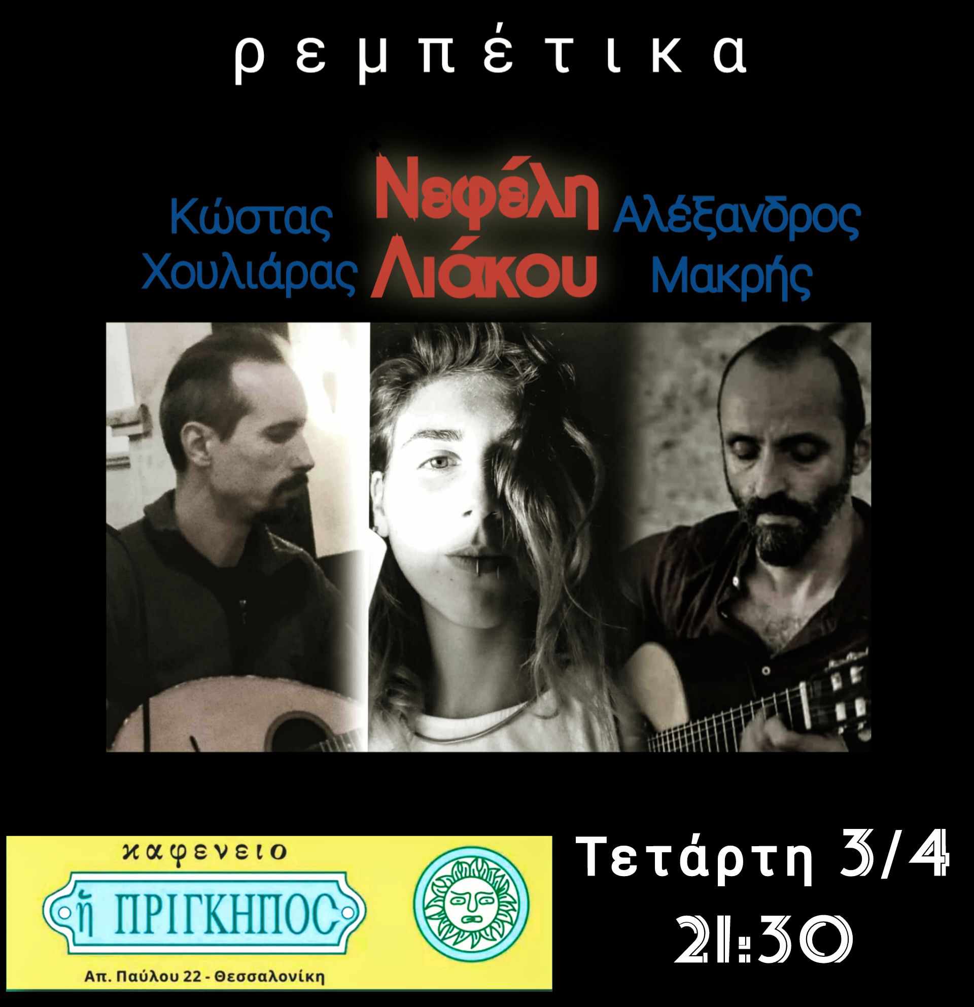 Τετάρτη 3 Απριλίου 2024 Έντεχνο Λάιβ στην Πρίγκηπο με τους Αλέξανδρο Μακρή, Χριστίνα Λιάκου και Κώστα Χουλιάρα Είσοδος 3 ευρώ Κρατήσεις 2310248188
