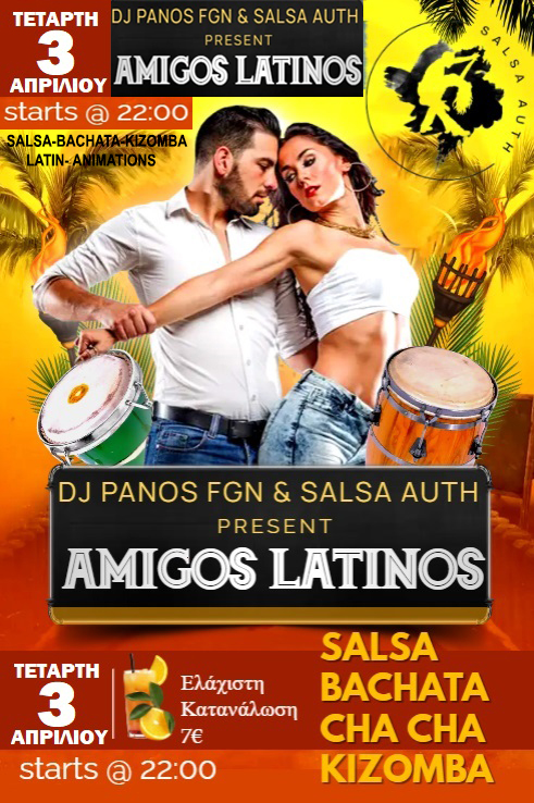 Dj Panos Fgn on the decks, Salsa-Bachata-Rueda-Kizomba-Latin-Animations, Doors Open 22:00, Ελάχιστη κατανάλωση 7€