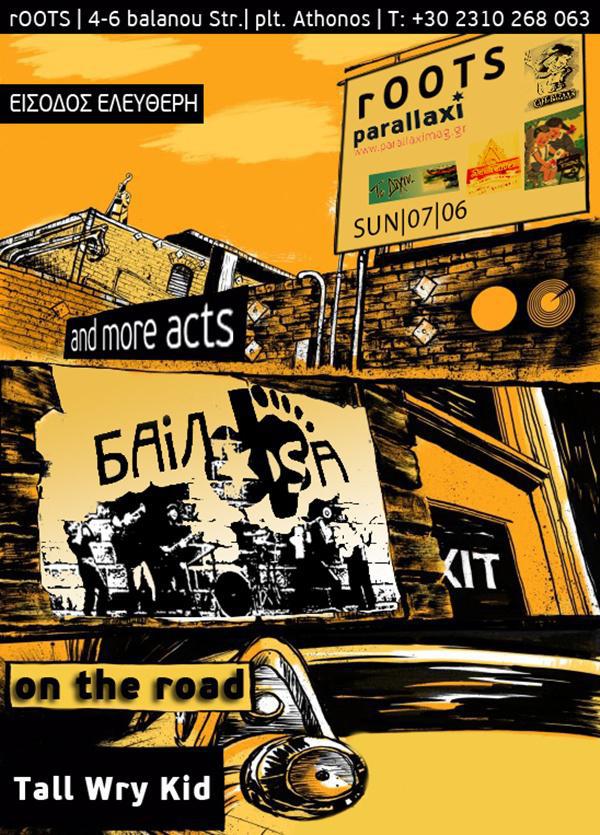 Για ακόμη μια χρονιά το Bar – veggie restaurant ROOTS μας καλεί να αλλάξουμε διάθεση, να διασκεδάσουμε, να χορέψουμε, να τραγουδήσουμε και να απολαύσουμε τραγούδια σε αυτή τη νέα μουσική συνάντηση της πόλης. Μαζί μας θα είναι για να μας ξεσηκώσουν τρεις δυναμικές μπάντες όπως οι Baildsa, οι On the road και ο Tall wry kid ξεσηκώνοντάς μας με ελληνική και ξένη ροκ μουσική με βαλκανικό χρώμα.