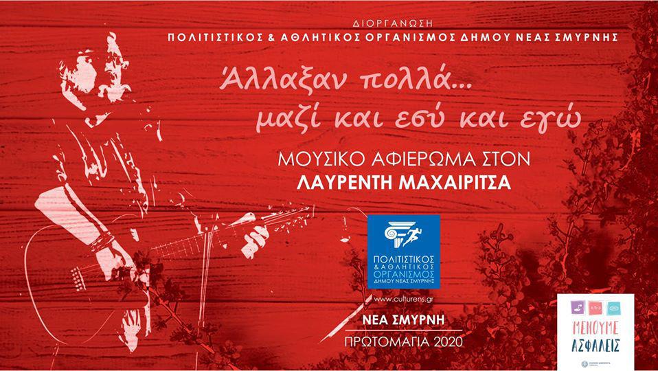 Στην ανακοίνωση της εκδήλωσης αναφέρεται πως “Ο Λαυρέντης Μαχαιρίτσας υπήρξε φίλος της Νέας Σμύρνης και του Πολιτιστικού Οργανισμού, καθώς τα τελευταία δέκα χρόνια τιμούσε σχεδόν κάθε χρόνο τον Δήμο μας με συναυλίες στο Πολιτιστικό Φεστιβάλ του Σεπτεμβρίου, αλλά και την Πρωτομαγιά, σε συνεργασία με πολλούς καλλιτέχνες κάθε φορά…”