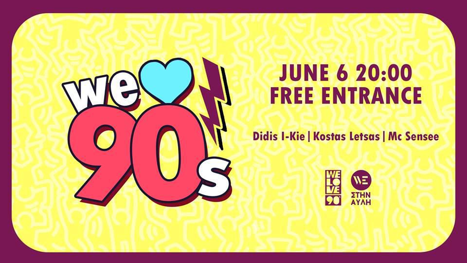 Το We Love 90s ξαναχτυπά στην αυλή του WE για όλους εκείνους που μεγάλωσαν ή θρέφουν ιδιαίτερη αγάπη για τα ’90s. Πρόκειται για τους χαρακτηριστικότερους εκπροσώπους των old-school DJs στη Θεσσαλονίκη. Ήρθαν για να σας μεταφέρουν στην χρυσή εποχή του clubing με ήχους από house-techno-breaks-freestyle κομμάτια από το 1987 μέχρι το 1999 που έγιναν σήμα κατατεθέν του nightlife στη Θεσσαλονίκη και τη βόρεια Ελλάδα γενικότερα.