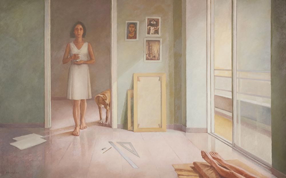 Πιο κάτω στην οδό Αγίου Δημητρίου, σε περιμένει η αναδρομική έκθεση της ζωγράφου Ναταλίας Θωμαΐδη με τίτλο «Σπίτια και Άνθρωποι», που θα φιλοξενείται στον 1ο όροφο του Τελλογλείου Ιδρύματος Τεχνών Α.Π.Θ. από τις 17 Ιουνίου έως και τις 22 Αυγούστου 2020. Παρουσιάζονται περισσότερα από εξήντα έργα-ελαιογραφίες της καλλιτέχνιδας, που σκιαγραφούν την πολυετή πορεία της στην εικαστική ζωή της Θεσσαλονίκης. Έμφαση δίνεται στα έργα της τελευταίας δεκαετίας (προσωπογραφίες και εσωτερικά), πολλά εκ των οποίων εκτίθενται για πρώτη φορά στο κοινό. Η ζωγραφική της Ναταλίας Θωμαΐδη, βαθιά ανθρωποκεντρική και ψυχογραφική, τοποθετεί στον πυρήνα του έργου την ανθρώπινη μορφή, η οποία κυριαρχεί ακόμα και μέσα από την απουσία της, ενώ αφήνει τον προσωπικό της χώρο και τα αντικείμενα να αφηγηθούν στον θεατή την ιστορία της. H διαλεκτική σχέση μορφής-φωτός, η οποία ξεδιπλώνεται σε οικείους σε αυτή εσωτερικούς χώρους αναδεικνύει την απλότητα και την ποιητική των πραγμάτων. Ακόμα και τα καθημερινά αντικείμενα μέσα στη μαγεία της κλειστής κάμαρας αποκτούν νέο σημασιολογικό περιεχόμενο.