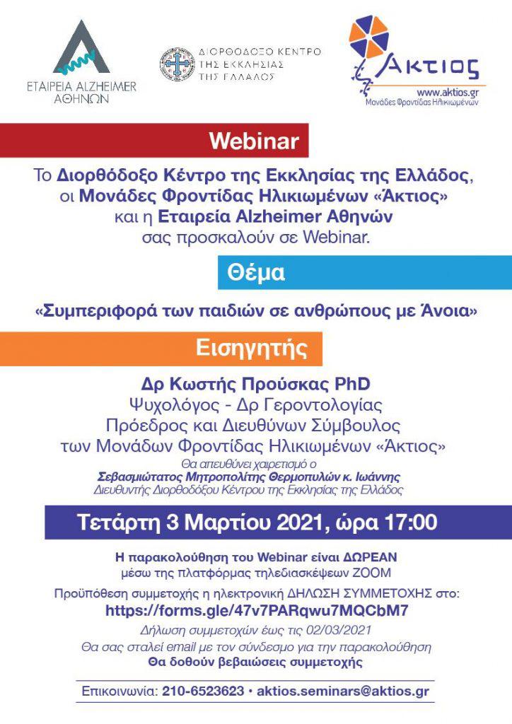 *Τετάρτη 03 Μαρτίου 2021, ώρα: 17:00, ΔΩΡΕΑΝ παρακολούθηση, Πλατφόρμα Τηλεδιασκέψεων ZOOM, Προϋπόθεση συμμετοχής η ηλεκτρονική ΔΗΛΩΣΗ ΣΥΜΜΕΤΟΧΗΣ