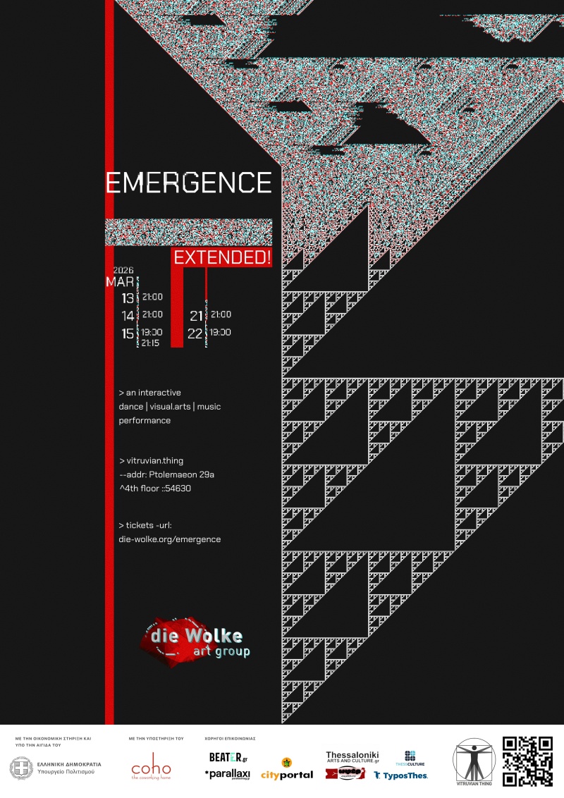 Το Emergence, συνδυάζοντας τις ψηφιακές τέχνες με το χορό και την πρωτότυπη μουσική μέσω αισθητήρων κίνησης, αναζητά την ανθρώπινη πρωτότυπη σκέψη στους μηχανισμούς των αναδυόμενων μοτίβων, στην εποχή της τεχνητής νοημοσύνης.