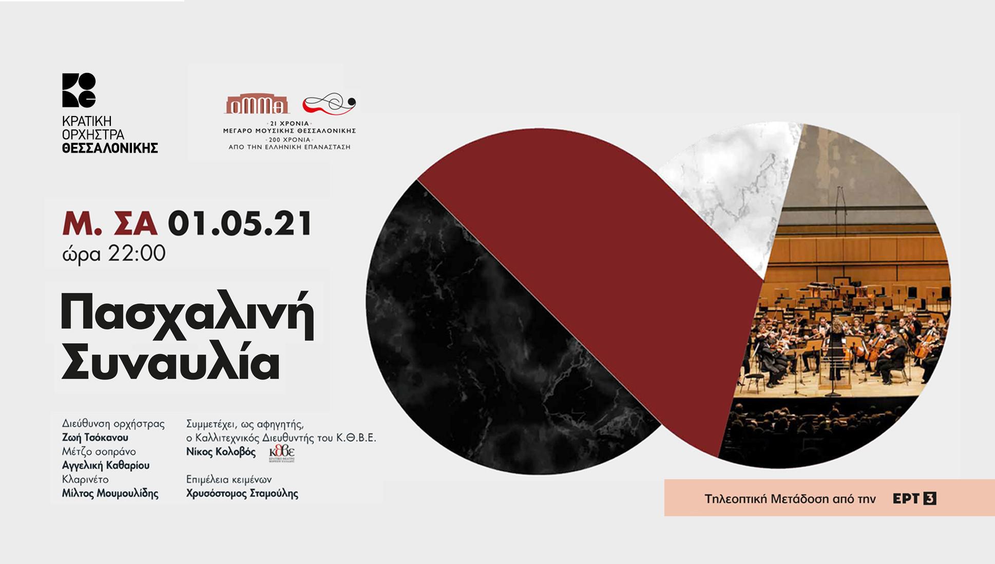 Η φετινή Πασχαλινή συναυλία της ΚΟΘ και του ΟΜΜΘ, με έργα σπουδαίων Ελλήνων συνθετών στο πνεύμα των ημερών, σε αποκλειστική τηλεοπτική μετάδοση από την ΕΡΤ3, το Μ. Σάββατο, στις 22:00