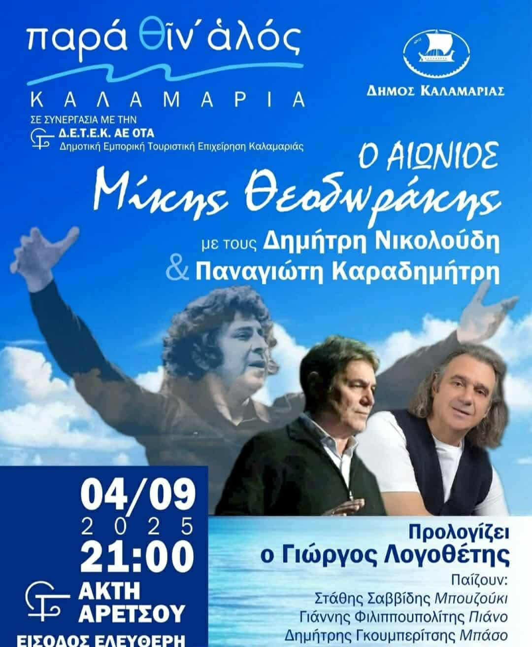 Ο πιο ιστορικός πολιτιστικός θεσμός της Καλαμαριάς, το «Παρα θιν’ αλός», επιστρέφει φέτος με ένα πλούσιο πρόγραμμα συναυλιών, παραστάσεων και ξεχωριστών βραδιών, φέρνοντας την τέχνη και το κοινό δίπλα στη θάλασσα, ενώ παράλληλα συνδέει το Κόδρα με την πόλη. Το ομηρικό όνομα του θεσμού φέρνει στο προσκήνιο την έννοια της θάλασσας και της σύνδεσης με την πόλη, ενισχύοντας τον χαρακτήρα της Καλαμαριάς ως πολιτιστικού προορισμού.
