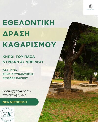 Εθελοντική δράση Καθαρισμού στους Κήπους του Πασά, Κυριακή 27/4 στις 10:30