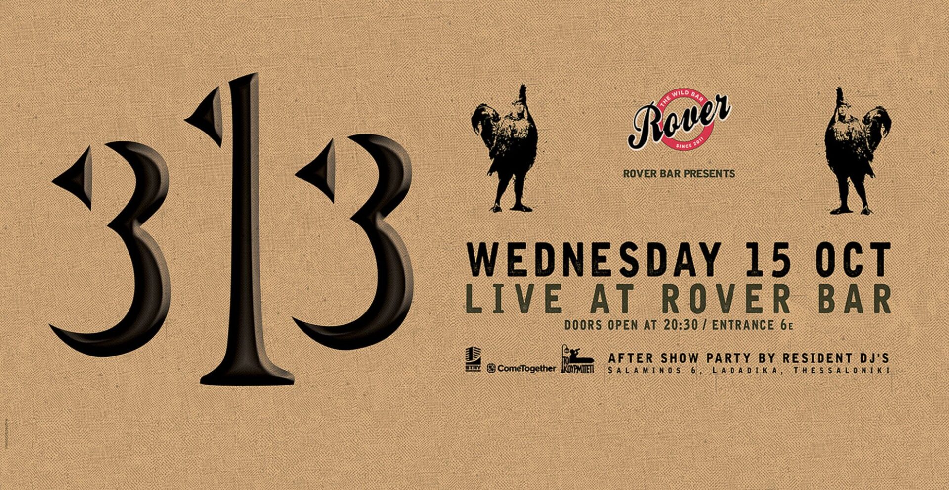 Οι 313, μια αυτοσχεδιαστική groove μπάντα από τη Θεσσαλονίκη, ανεβαίνει στη σκηνή του Rover Bar για ένα μοναδικό live την Τετάρτη, 15 Οκτωβρίου.