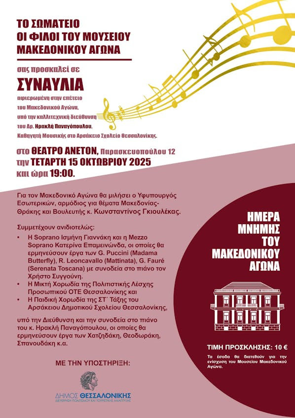 “Οι Φίλοι του Μουσείου Μακεδονικού Αγώνα” διοργανώνουν συναυλία στη Θεσσαλονίκη
