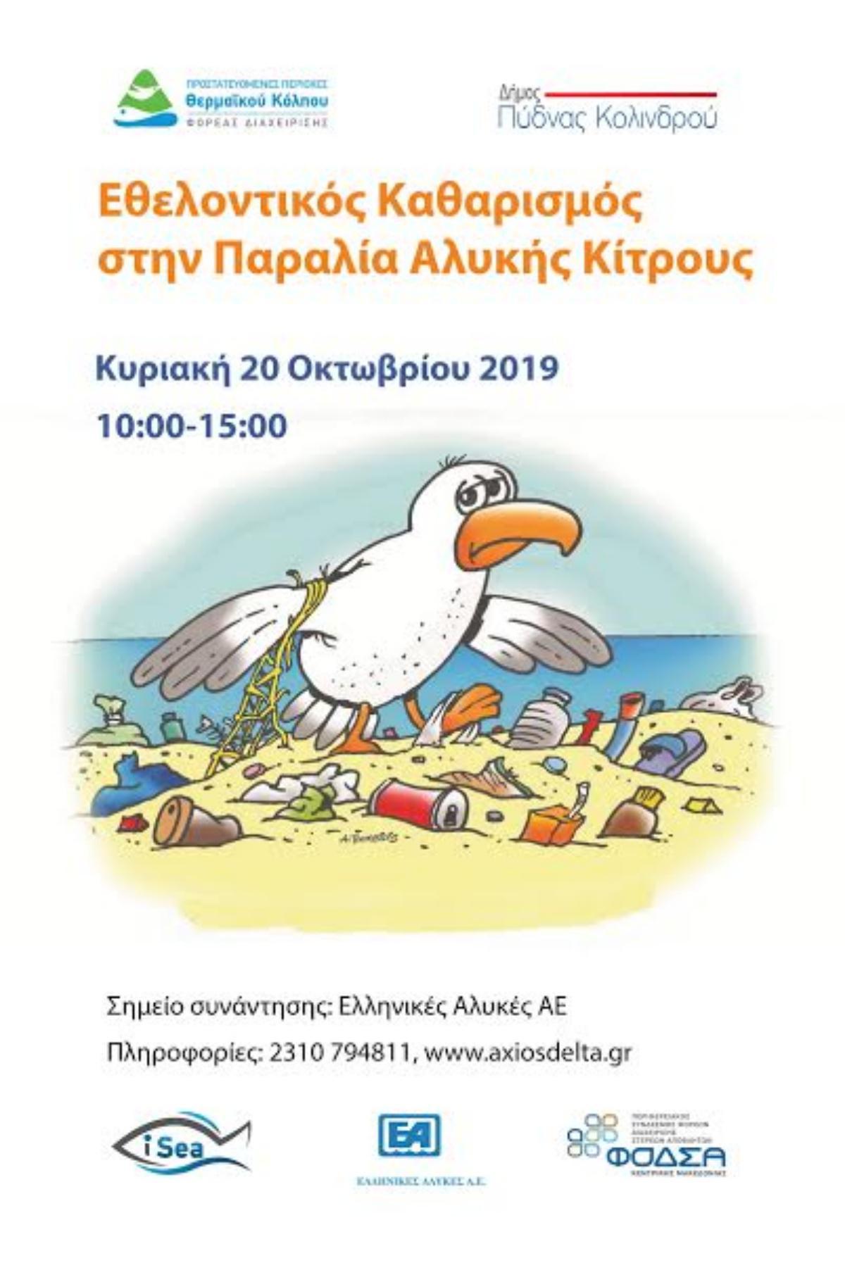 Κάλεσμα για συμμετοχή στον εθελοντικό καθαρισμό της παραλίας Αλυκής Κίτρους απευθύνει και πάλι ο Φορέας Διαχείρισης Προστατευόμενων Περιοχών Θερμαϊκού Κόλπου, για την Κυριακή 20 Οκτωβρίου.