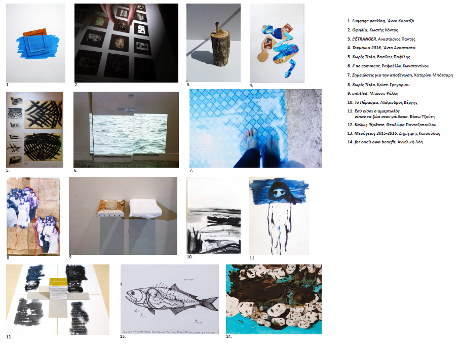Ex-ils, εικαστικές σημειώσεις πάνω στον εκπατρισμό. Ομαδική έκθεση : Άντα Αναστασέα, Αλέξανδρος Βέργης, Κρίστι Γρηγορίου, Άννα Καρατζά, Δημήτρης Κατσούδας, Κωστής Κόντος, Ραφαέλλα Κωνσταντίνου, Αγγελική Λόη, Κατερίνα Μπότσαρη, Θεοδώρα Πανταζοπούλου, Αναστάσιος Παντής, Νίκος Παπαδόπουλος, Βασίλης Παφίλης, Βάσω Τζούτη, Μπέσσυ Ράλλη.