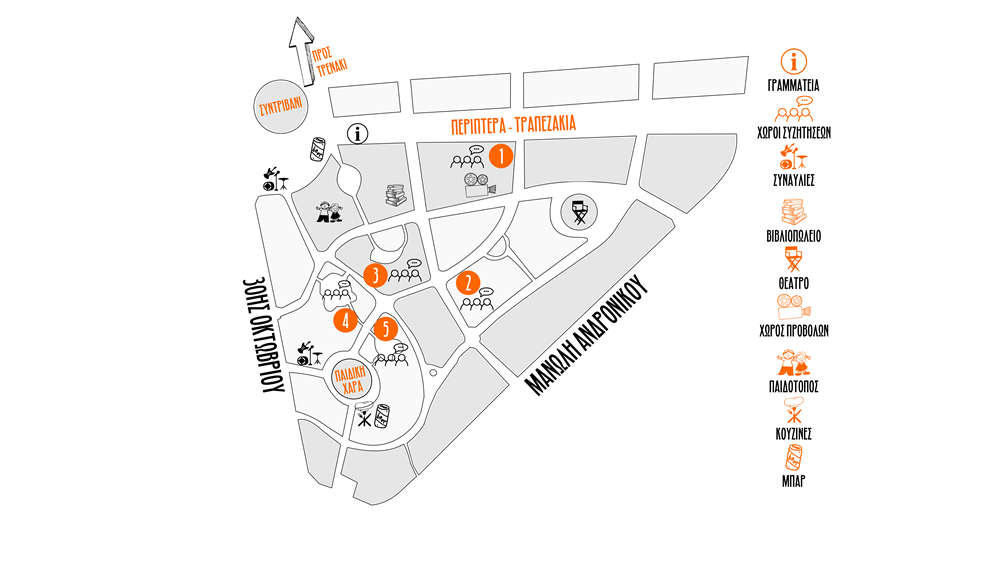 | δρώμενα | συναυλίες | συζητήσεις | παιδότοπο | εργαστήρια | θεατρικές παραστάσεις | μεταναστευτικές κουζίνες | performances |