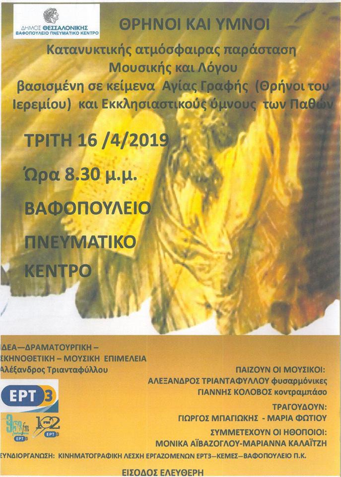 Την Τρίτη η παράσταση “Θρήνοι και Ύμνοι” στο Βαφοπούλειο