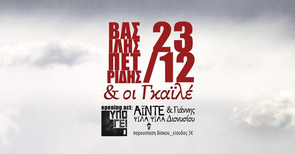 *Σάββατο 23 Δεκεμβρίου, Υπόγειο (Μελενίκου 13), Είσοδος: 3€, οι πόρτες ανοίγουν στις 21:00. Ο δίσκος θα είναι διαθέσιμος στον χώρο της συναυλίας σε μειωμένη τιμή (10€)
