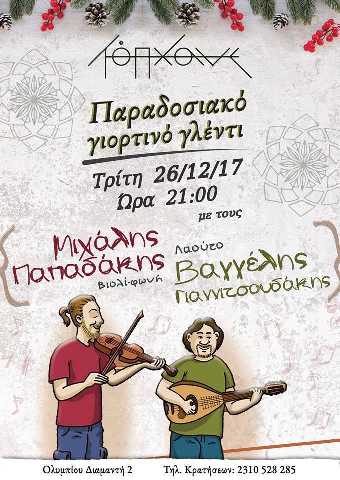 Φίλοι καλώς ορίσατε εις τον δικό μου χώρο και την καρδιά μου ολόψυχα σας την εκάνω δώρο. Μια γιορτινή βραδια με αγαπημένους ήχους της Κρήτης και οχι μόνο αφιερωμένη στην παράδοση που τόσο αγαπά το Τοπ Χανέ Μιχάλης Παπαδάκης φωνή – βιολί Βαγγέλης Γιαννιτσουδάκης λαούτο