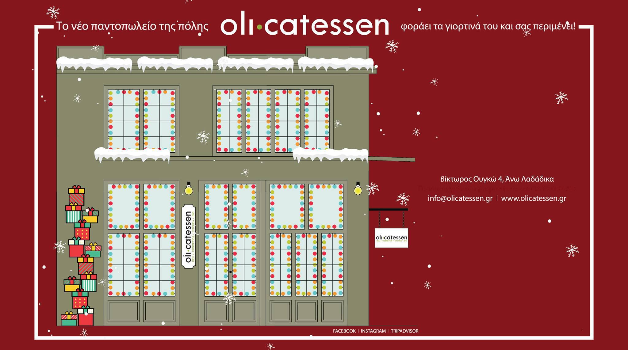 Παρασκευή βράδυ ΔΕΝ κλείνουμε – Παραμένουμε ανοιχτά! Το Olicatessen Παρασκευή 22.12 βράδυ 9μμ χαμηλώνει τα φώτα, βάζει Χριστουγεννιάτικη μουσική, ανάβει κεριά, κερνάει τσίπουρο και συνεχίζει να λειτουργεί! Ατμόσφαιρα εποχής για μόνο μόνο νύχτα το χρόνο!