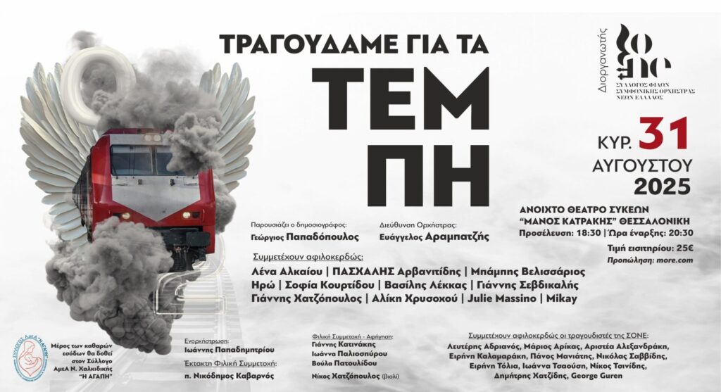 Ο Σύλλογος Φίλων Συμφωνικής Ορχήστρας Νέων Ελλάδος, θα πραγματοποιήσει στην Θεσσαλονίκη, συναυλία αφιερωμένη στην μνήμη των 57 θυμάτων του σιδηροδρομικού δυστυχήματος στα Τέμπη.
