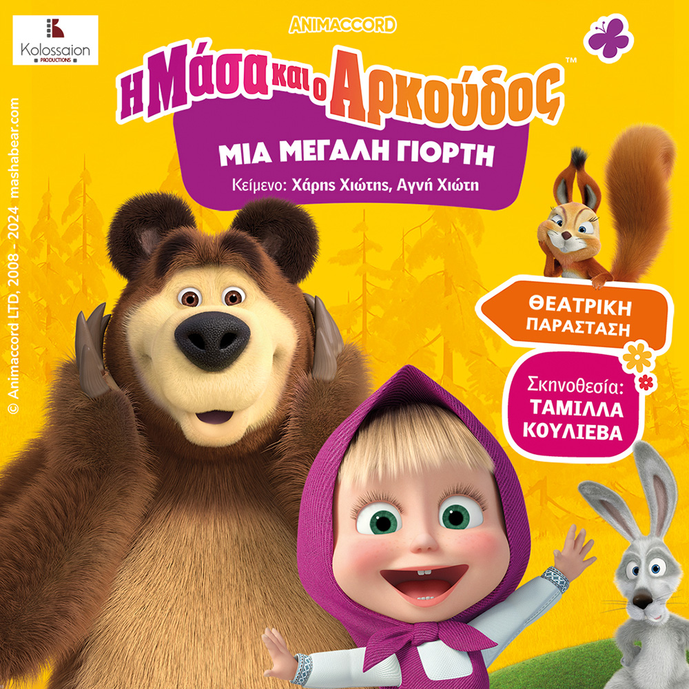 Η Μάσα και ο Αρκούδος μας καλωσορίζουν στην μεγάλη τους γιορτή! «Η Μάσα και ο Αρκούδος, μία μεγάλη γιορτή» μια θεατρική παράσταση που θα σας συναρπάσει. Μην τη χάσετε.