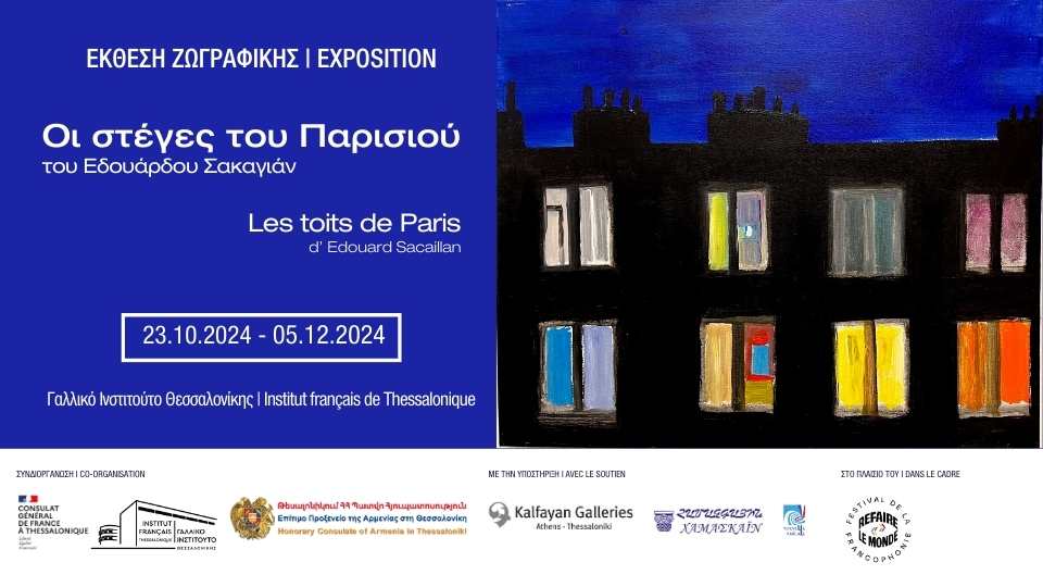 Την έκθεση ζωγραφικής με τίτλο «Οι Στέγες του Παρισιού» (Les toits de Paris) του Εδουάρδου Σακαγιάν υποδέχεται το Γαλλικό Ινστιτούτο Θεσσαλονίκης στο πλαίσιο του Φεστιβάλ Γαλλοφωνίας «Refaire le Monde».