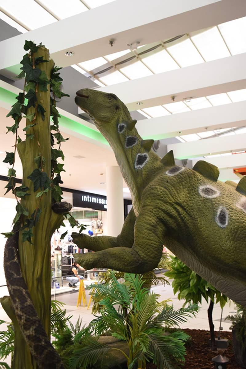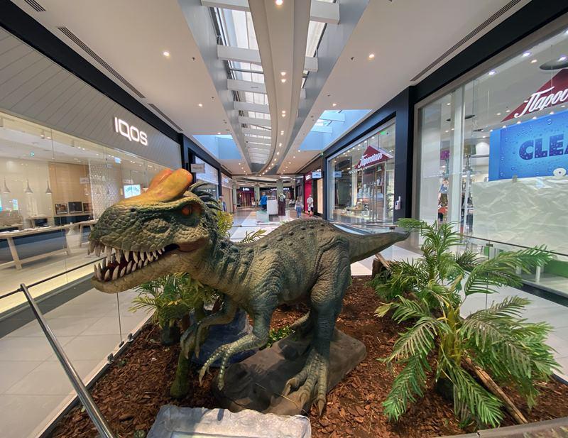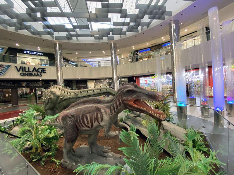 Ο Βραχιόσαυρος που απολαμβάνει το γεύμα του στο φυσικό του περιβάλλον, ο «αιχμάλωτος» Βελοσιράπτορας, ο επιβλητικός Τρικεράτοπας και ο ιπτάμενος Πτερόσαυρος είναι μερικοί από τους δεινόσαυρους που θα βρείτε στους χώρους του εμπορικού κέντρου. Φυσικά, από την παρέα των δεινοσαύρων δεν θα μπορούσε να απουσιάζει ένα από τα δεινότερα σαρκοφάγα, ο πιο γνωστός δεινόσαυρος που έζησε στον πλανήτη μας, ο κολοσσιαίων διαστάσεων προϊστορικός θηρευτής Τυραννόσαυρος Ρεξ!!