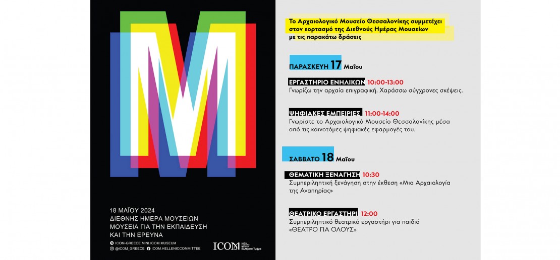 Το Αρχαιολογικό Μουσείο Θεσσαλονίκης συμμετέχει στον εορτασμό με τις παρακάτω δράσεις: