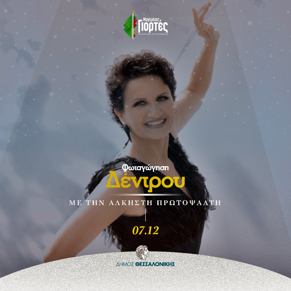 Η Άλκηστις Πρωτοψάλτη, το PIANDAEMONIUM και ένα εντυπωσιακό φωτιστικό σόου από τα κτίρια της Πλατείας Αριστοτέλους και ένα εντυπωσιακό δέντρο στην πλατεία θα είναι το μεγάλο χαρτί του ανάματος του δέντρου στις 7 Δεκεμβρίου -σύμφωνα με την πρώτη ημερομηνία που ανακοινώθηκε- για φέτος. (Αναμένεται νεότερη ενημέρωση μιας και γίνονται συζητήσεις και για το όνομα της Ελένης Φουρέιρα για την Παραμονή της Πρωτοχρονιάς).