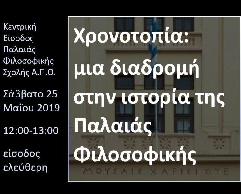 Το Σάββατο 25 Μαΐου, στο πλαίσιο της φετινής φοιτητικής εβδομάδας του ΑΠΘ, η site specific performance Χρονοτοπία της Ιωάννας Λιούτσια και του Κωνσταντίνου Σουλτάνη επιχειρεί ένα ταξίδι στο χώρο και στο χρόνο «για να γνωρίσουμε αυτές τις λίγο πολύ άγνωστες πτυχές της ιστορίας του κτιρίου».