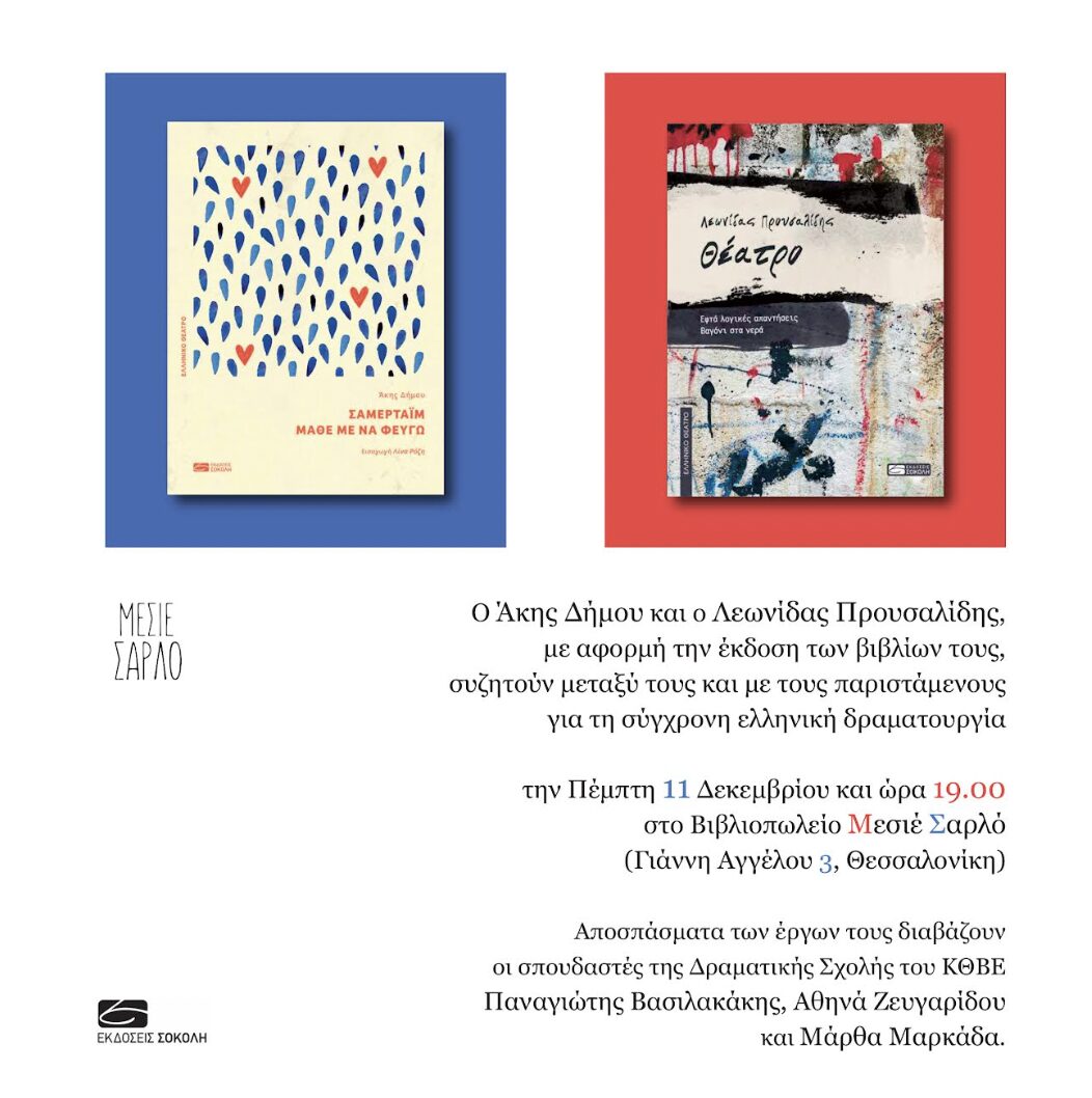 Στο βιβλιοπωλείο Μεσιέ Σαρλό (Γιάννη Αγγέλου 3) και ώρα 19:00.