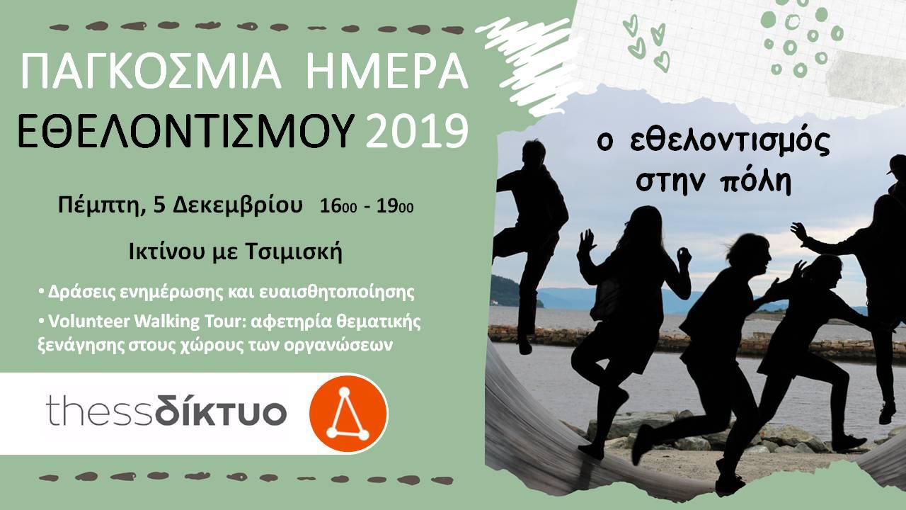To Δίκτυο Εθελοντικών Οργανώσεων Θεσσαλονίκης (Thess-Δίκτυο) με αφορμή την Παγκόσμια Ημέρα Εθελοντισμού, διοργανώνει την Πέμπτη 5 Δεκεμβρίου στην συμβολή των οδών Τσιμισκή και Ικτίνου, ώρες 16:00-19:00, μία γιορτή δρόμου με πολλές παράλληλες δράσεις.
