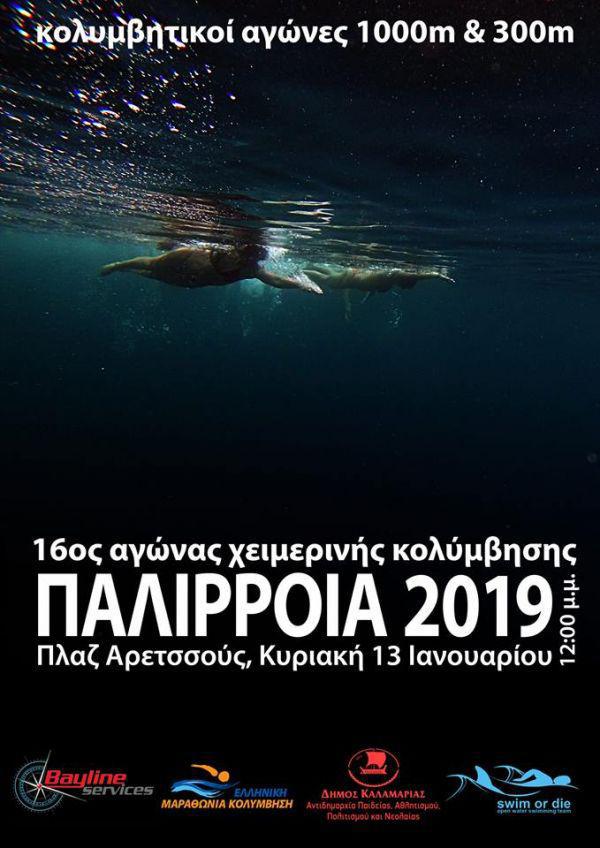 Το Γραφείο Αθλητισμού του Δήμου Καλαμαριάς διοργανώνει φέτος τον 16ο Χειμερινό Αγώνα Κολύμβησης «ΠΑΛΙΡΡΟΙΑ» με απώτερο σκοπό να γίνει θεσμός. Ο αγώνας θα διεξαχθεί την Κυριακή 13 Ιανουαρίου 2019 στις 12 το μεσημέρι στην πλαζ Αρετσούς.