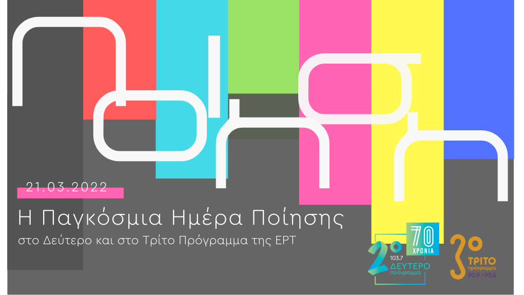 Αφουγκραζόμενα τον λόγο των ποιητών, το Δεύτερο Πρόγραμμα 103,7 και το Τρίτο Πρόγραμμα 90,9 & 95,6, τη Δεύτερα 21 Μαρτίου 2022 γιορτάζουν την Παγκόσμια Ημέρα Ποίησης.