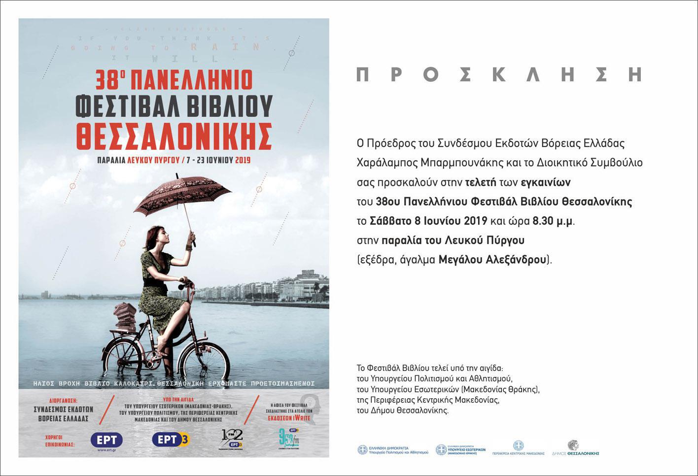 Ο Πρόεδρος του Συνδέσμου Εκδοτών Βόρειας Ελλάδας Μπάμπης Μπαρμπουνάκης αναφέρει: « Ο μεγαλύτερος θεσμός του πολιτισμού στην πόλη μας θα λειτουργήσει και φέτος στο πλακόστρωτο της παραλιακής λεωφόρου στο Λευκό Πύργο. Το Φεστιβάλ Βιβλίου θα είναι πλαισιωμένο με εκδηλώσεις που θα καλύπτουν όλο το φάσμα του πολιτισμού κατά τη διάρκεια λειτουργίας του. Πιστεύουμε ότι πάνω από πεντακόσιοι συγγραφείς θα παρευρεθούν, θα παρουσιάσουν και θα υπογράψουν τα βιβλία τους. Η σχέση που αναπτύσσεται μεταξύ των συγγραφέων και των επισκεπτών είναι μοναδική λίγο καιρό πριν τις καλοκαιρινές διακοπές. Αισιοδοξούμε και φέτος ότι οι συμπολίτες μας και όχι μόνο θα μας επισκεφτούν, αποδεικνύοντας ότι το βιβλίο παραμένει το βασικό εργαλείο της γνώσης και της μόρφωσης. Καλό καλοκαίρι με ένα βιβλίο στο χέρι…»