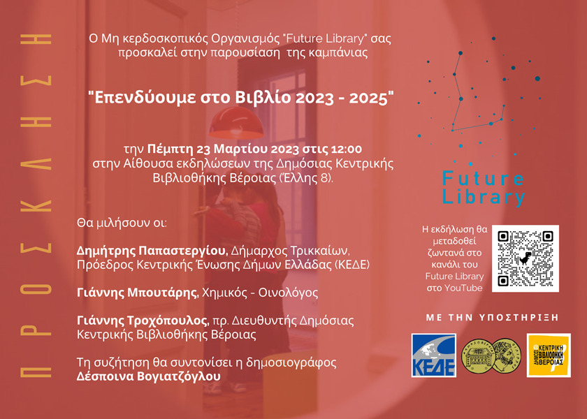 *Η εκδήλωση θα μεταδοθεί ζωντανά και από το κανάλι του Future Library στο YouTube (https://www.youtube.com/@FutureLibrary)