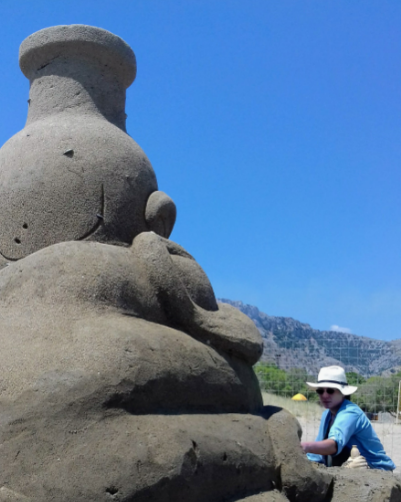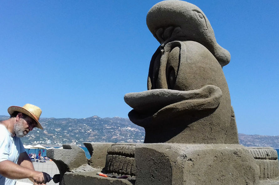 Από εκεί και πέρα, το 2016 σκεφτήκαμε ότι πρέπει να πάρουμε θέση για το μεγάλο πρόβλημα που υπάρχει σήμερα, τη μόλυνση του περιβάλλοντος, περισσότερο του θαλάσσιου οικοσυστήματος. Οπότε, η σκέψη ήταν να πάμε δίπλα στη θάλασσα, να δουλέψουμε εκεί για να ευαισθητοποιήσουμε τον κόσμο περνώντας το μήνυμά μας. Και το καλύτερο σημείο είναι η Αμμουδάρα, με επτά χιλιόμετρα παραλία γεμάτη από άμμο. Στόχος μας είναι το φεστιβάλ Γλυπτικής στην άμμο να παραμείνει ένας θεσμός σταθερός στην Κρήτη ώστε να μπορεί να ευαισθητοποιεί τους ανθρώπους και περισσότερο τη νέα γενιά, για το μεγάλο πρόβλημα της μόλυνσης του περιβάλλοντος.