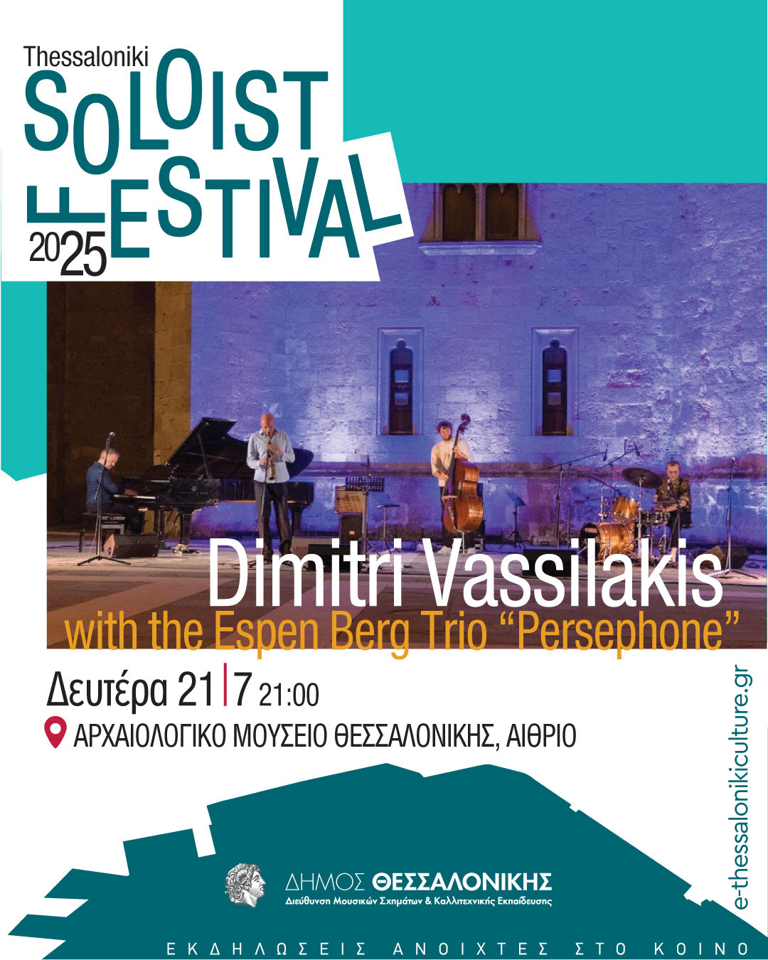 Με αφορμή την διεθνή περιοδεία του διεθνούς φήμης σαξοφωνίστα συνθέτη και ερευνητή Δημήτρη Βασιλάκη σε Ελλάδα, Βαλκάνια και Κύπρο και την κυκλοφορία του τέταρτου άλμπουμ “Fjære” από το τρίο του Espen Berg από τη Νορβηγία, εν μέσω Ευρωπαϊκής περιοδείας τους, προτείνουμε αυτό το σχήμα για το Soloist Festival 2025 της Θεσσαλονίκης σε μια μοναδική συναυλία σε συνεργασία με την Νορβηγική Πρεσβεία.