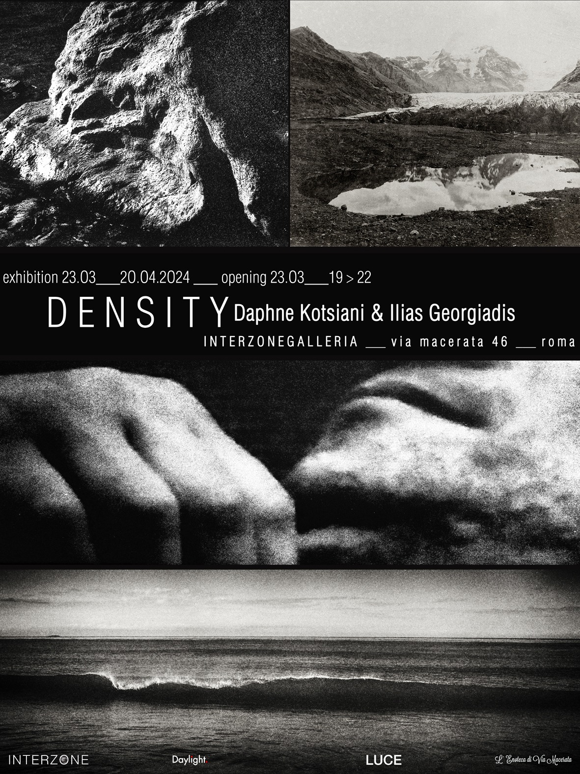 Η Γκαλερί INTERZONE στην πόλη της Ρώμης φιλοξενεί την από κοινού έκθεση των Δάφνη Κοτσιάνη και Ηλία Γεωργιάδη με τίτλο “Density”. Οι δύο Έλληνες εικαστικοί φωτογράφοι ως δίδυμο παρουσιάζουν τα έργα τους για πρώτη φορά από κοινού. Η έκθεση σηματοδοτεί την πρώτη φορά που το δίδυμο παρουσιάζει τη συνεργατική τους εξερεύνηση και την αλληλεπίδραση μεταξύ του φωτογραφικού βλέμματος και των συνδέσμων της μνήμης και του χρόνου.