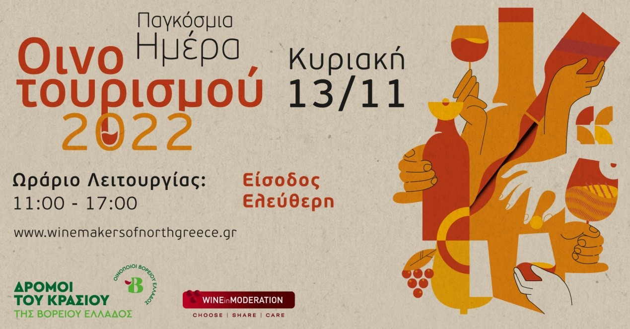 Την Κυριακή 13 Νοεμβρίου γιορτάζουμε τον οινοτουρισμό και σας προσκαλούμε στα επισκέψιμα οινοποιεία των “Δρόμων του Κρασιού της Βορείου Ελλάδος” για ξεναγήσεις και γευστικές δοκιμές!!!
