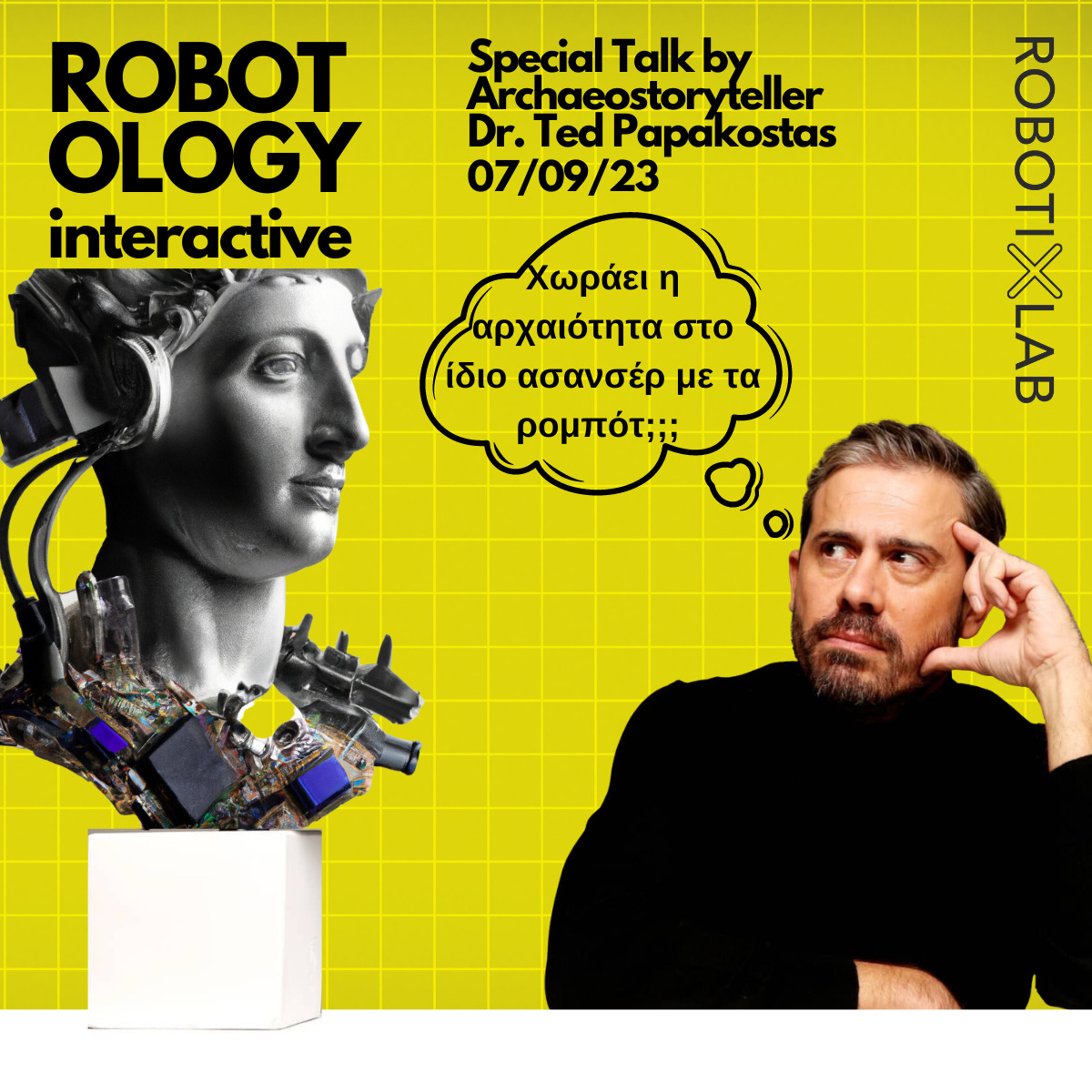 Η έκθεση θα πραγματοποιηθεί στους χώρους της Robotixlab, Λεωφόρος Γεωργικής Σχολής 27, Θεσσαλονίκη, από Πέμπτη 07/09/2023 έως Κυριακή 10/09/2023.