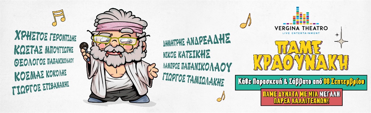 Ο Σταμάτης Κραουνάκης δίνει ραντεβού με το κοινό της Θεσσαλονίκης τον Σεπτέμβριου 2023 στο Vergina Theatro, με τη μουσική παράσταση Πάμε Κραουνάκη και μας κάνει όλους μία παρέα. Από 8 Σεπτεμβρίου και κάθε Παρασκευή και Σάββατο στις 22:00.