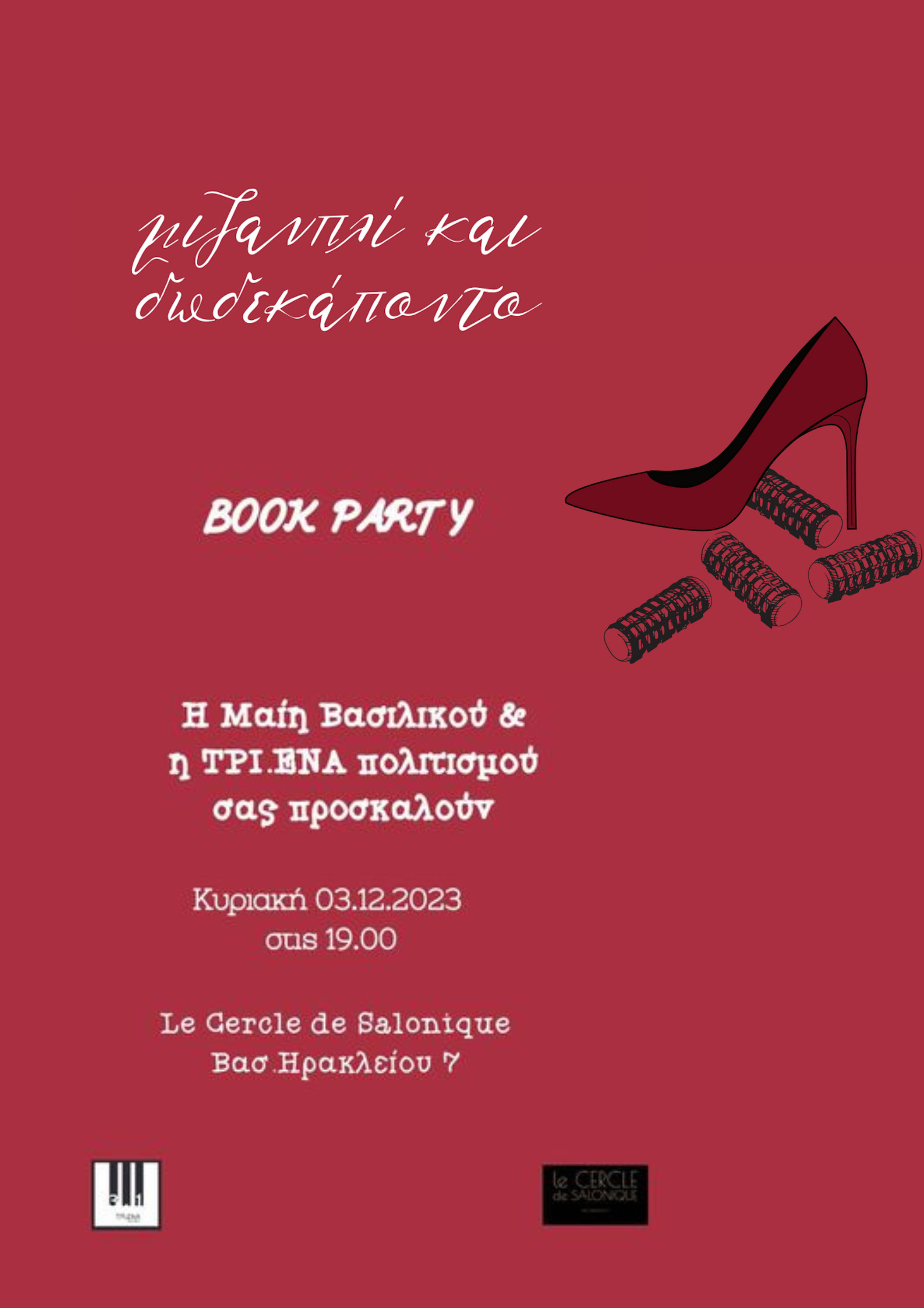 Book Party: Κυριακή 03 Δεκεμβρίου 2023 στις 19:00 | Τόπος: Le Cercle de Salonique | Διεύθυνση: Βασιλέως Ηρακλείου 7, Θεσσαλονίκη | Είσοδος ελεύθερη | Για πληροφορίες: ΤΡΙ.ΕΝΑ πολιτισμού Υπεύθυνη εκδόσεων Καλλιόπη Πασιά – Τηλ. Επικοινωνίας 6937007810